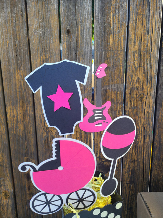 BOYS ROCK A BYE Shaker Cake Topper Girls Rock Rock A Bye Baby Born to Rock Rockstar Baby Shower