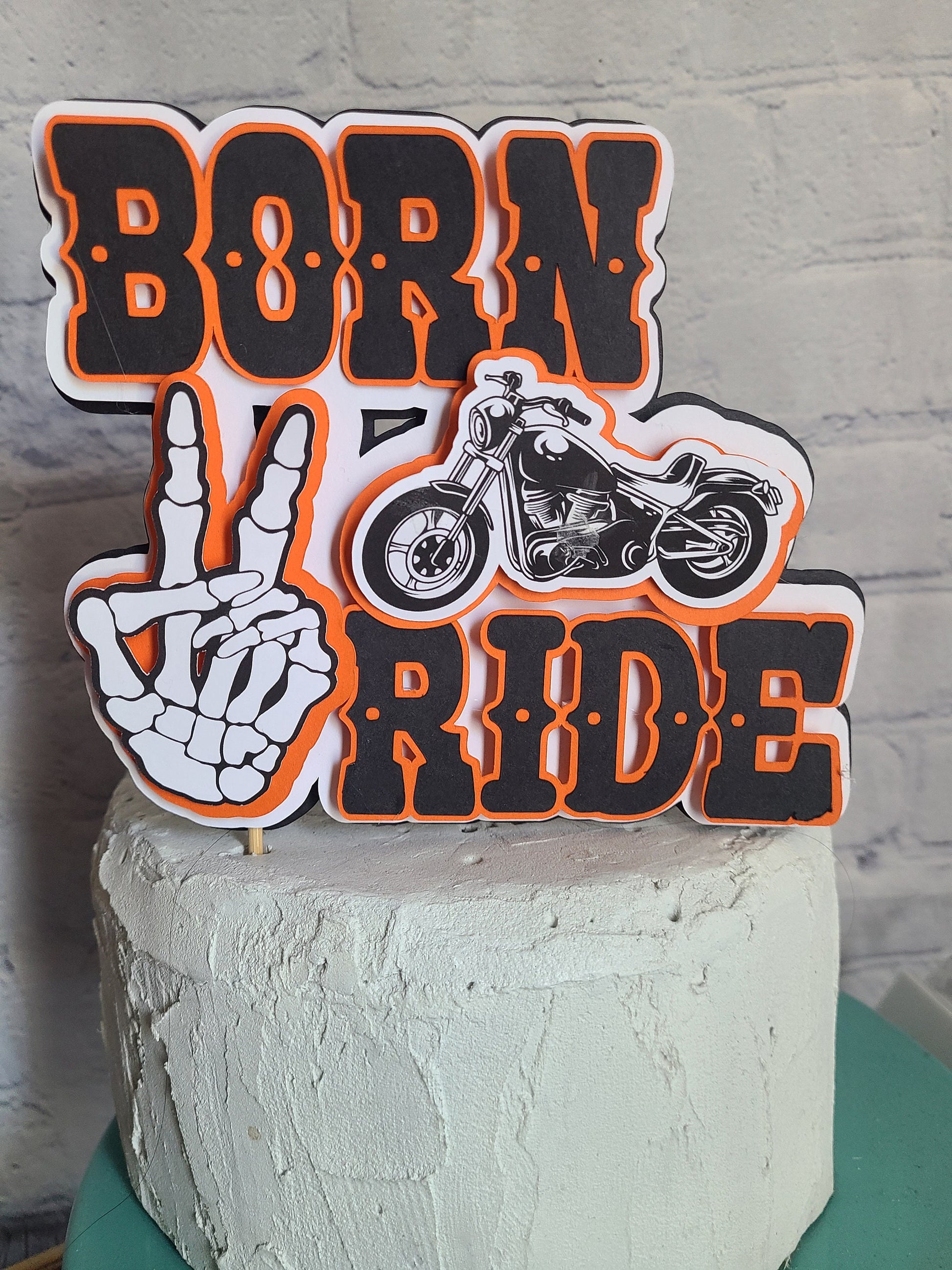 Diecut Decor's Born Two Ride Cake Topper is the perfect addition to any Motorcycle themed birthday