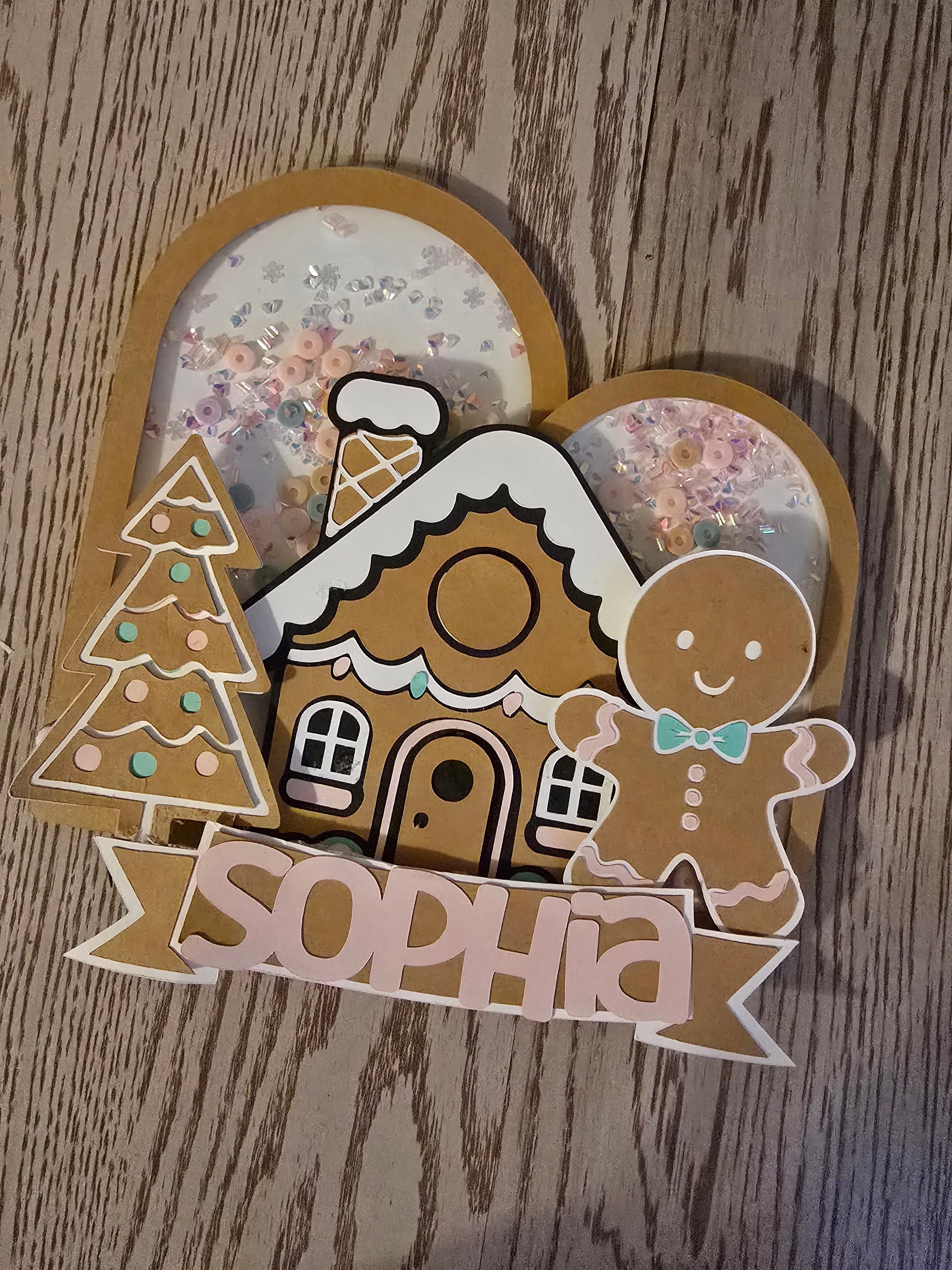 Shaker will include clay beads and filler, patterned backgroud will include a gingerbread and candy cane background piece