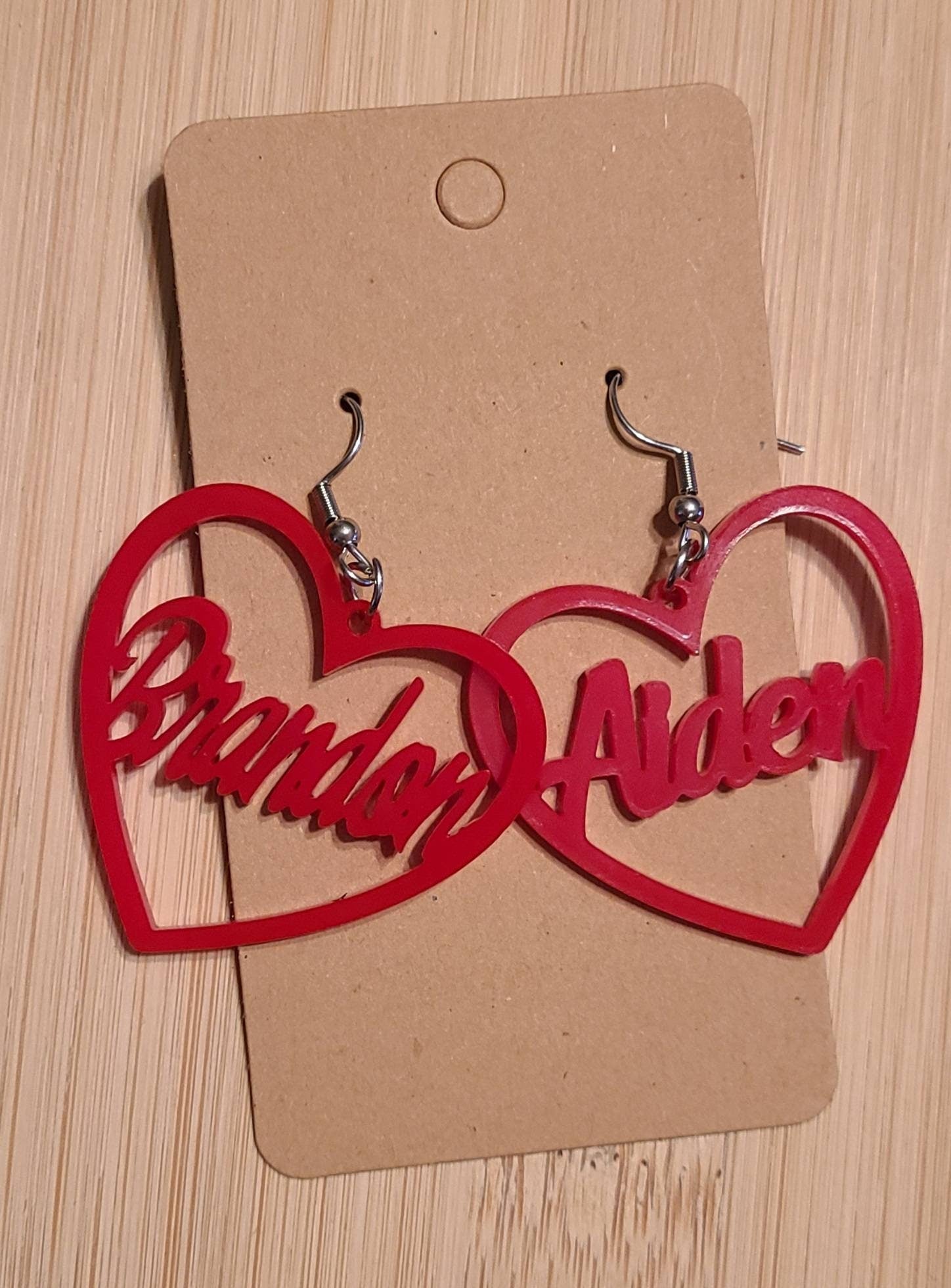 NAME HEART EARRINGS Acrylic Hoop Christmas Valentines Day Birthday
