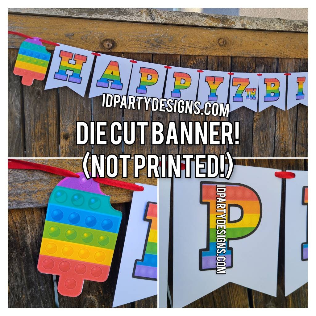 Diecut Decors Fidget Pop It banner is the perfect addition to your birthday party decor