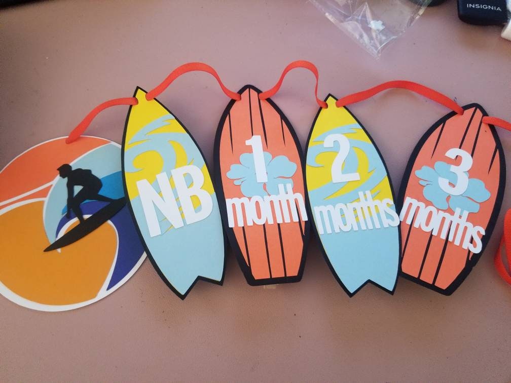 The Surfer option will be exactly as shown with the images in between Happy and Birthday or 1 on each end for the name banner